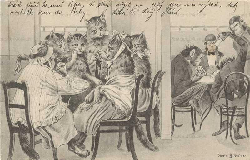 acb085-Cat Ladies & Ape Card Players