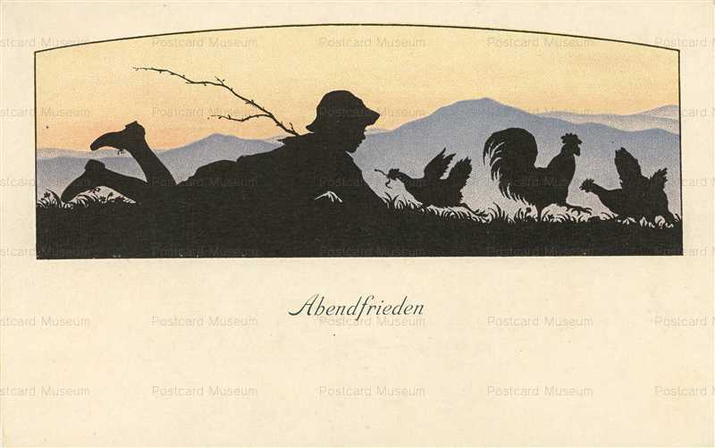 sic780-Silhouette Boy & Chickens  (sic780-Silhouette Boy & Chickens)