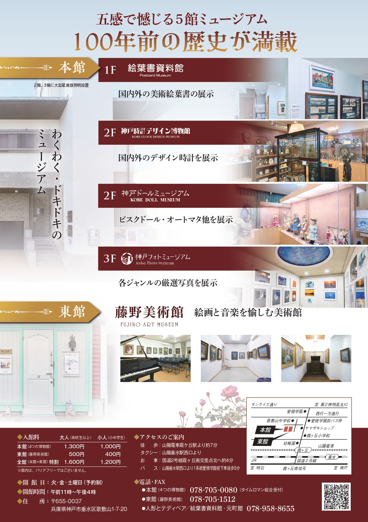神戸ドールミュージアム / 神戸時計デザイン博物館 / 絵葉書資料館 / 藤野美術館 (4館)