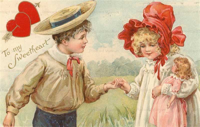vh013-Red Bonnet Girl hold Doll